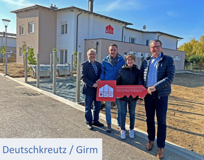 Die Partnerschaft zwischen der Oberwarter Siedlungsgenossenschaft OSG und Deutschkreutz/Girm ist eine lange und beachtliche: Bereits seit 20 Jahren setzt die OSG diverse Projekte in der Gemeinde im Burgenland erfolgreich um. Neben dem Zentrumsprojekt – dem neuen Gesundheits- und Sozialzentrum – und den geplanten Doppelhäusern im Bereich Kirchengasse/Girmer Straße sowie den beliebten Weingartenappartements wird auch weiterhin leistbarer Wohnraum geschaffen.
