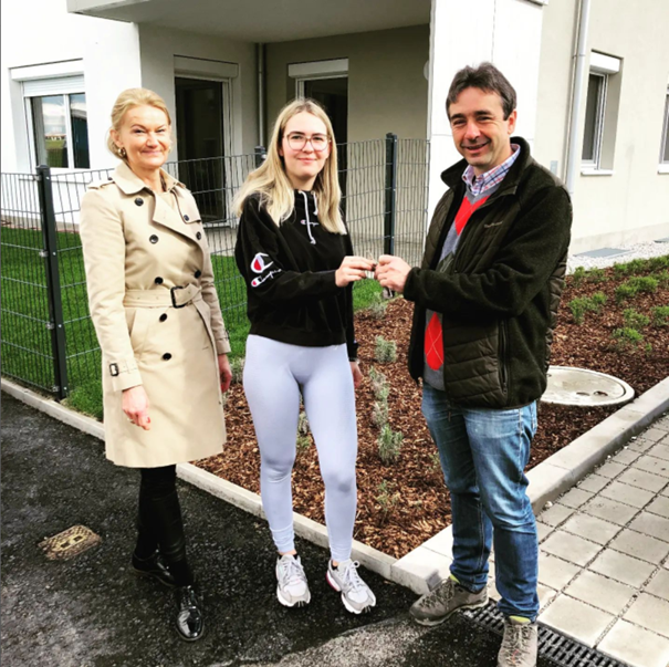 Die NEUE EISENSTÄDTER verwirklichte erst kürzlich nach den Plänen der Architekten Halbritter & Halbritter eine gemütliche Wohnhausanlage in Zemendorf. Die 16 Wohnungen der ersten beiden Stiegen wurden bereits 2020 übergeben. Nun wurden mit Stiege 3 zwölf weitere Wohnungen fertiggestellt und an die neuen Bewohnerinnen und Bewohner übergeben. Bei der feierlichen Schlüsselübergabe waren auch einige Ehrengäste dabei: Neben Angelika Mayer-Handler, Prokuristin der NEUEN EISENSTÄDTER, hieß auch Zemensdorfs Bürgermeister Herbert Pinter die neuen Mieterinnen und Mieter in der Gemeinde herzlich willkommen.