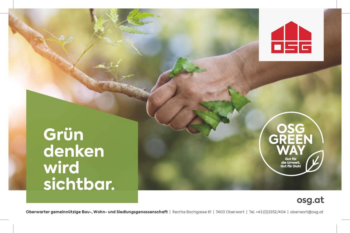 Anfang des Jahres hat die Oberwarter Siedlungsgenossenschaft (OSG) gemeinsam mit dem Land Burgenland den „Green Deal“ vorgestellt: Dabei handelt es sich um ein neues Projekt, welches vorsieht, alle Neubauten mit Photovoltaik-Anlagen auszustatten. Jährlich würde es sich hierbei um rund 600 Wohnungen und Reihenhäuser handeln. Mehr als eineinhalbtausend Mieterinnen und Mieter würden von dieser neuen, klimafreundlichen Technologie profitieren. Weiters plant die OSG auch bestehende Wohnhäuser sukzessive mit Photovoltaik-Anlagen und Wärmepumpen nachzurüsten.