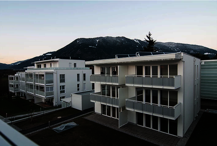 Direkt am Abfluss des malerischen Ossiacher Sees befindet sich die neue Wohnhausanlage in Villach. Diese ist ganz in Weiß gehalten und erscheint im modernen Baustil. Neben 26 Eigentums- wurden auch 24 geförderte Mietwohnungen errichtet. Zusätzlich zur außergewöhnlichen Lage verfügen alle Wohnungen auch über große Balkone und Loggien, mit Ausblick mitten ins Grüne. Wichtig bei dem Bauprojekt war auch der Fokus auf eine umweltschonende Energieversorgung, denn neben solarer Energieversorgung verfügt jede Wohnung über eine kontrollierte Wohnraumlüftung mit Wärmerückgewinnung zur allgemeinen Reduzierung der Energiekosten.