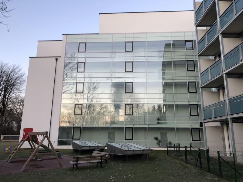 Die bestehende alte Wohnhausanlage aus den 1950er Jahren wurde im Reconstructing-Verfahren als Massivbau neu errichtet. Der Bauträger Fortschritt nutzt mit dieser Art zu bauen vorhandene Grundstücke und Flächen zwischen bereits bestehenden alten Häusern, um neue attraktive Lebens- und Wohnräume zu schaffen. Mit dieser Art des modernen Wohnbaus gelingt es der Wohnbaugenossenschaft, gemeinnütziges Handeln mit ökologischen und umweltschonenden Erfordernissen zu verbinden.