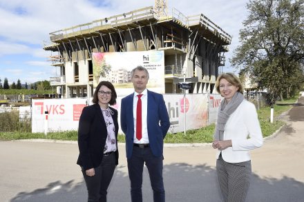 Wohnbauprojekt Klagenfurt hi HARBACH (v.l.n.r.) Gerlinde Peyker, Thomas Kuschnig, Gaby Schaunig © fritzpress