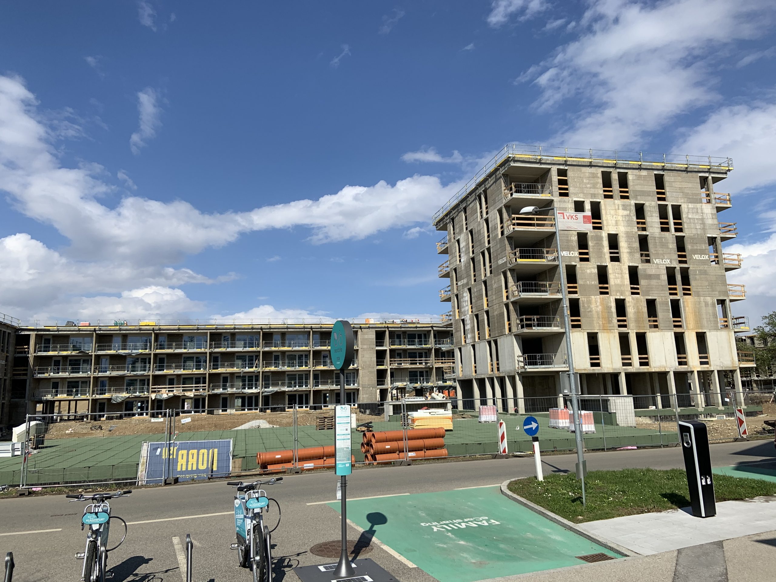 Durch den Einsatz der aus rund 30 Personen bestehenden Bautruppe gelangen kürzlich die Fertigstellung des Rohbaus sowie die Erreichung der Dachgleiche. Auch die Vollendung der Dachdichtungsarbeiten erfolgt planmäßig. Die Installationsarbeiten und der Innenausbau der ersten 94 Wohneinheiten wurden bereits begonnen. Zeitgleich erfolgen die An- und Aufschließungsarbeiten aller nötigen Versorgungsleitungen.
