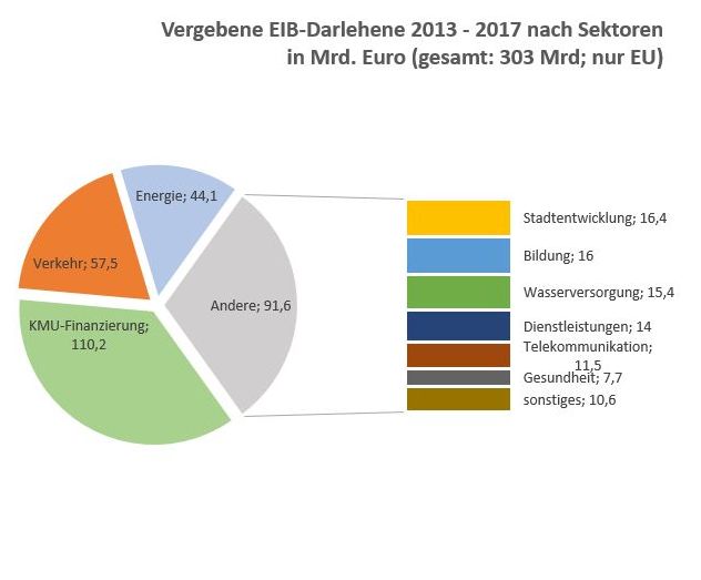 Im Fokus standen dabei Mittel der EIB. Diese Bank der Europäischen Union – Anteilseigner sind die Mitgliedsstaaten - hat sich der Finanzierung nachhaltiger Investitionsprojekte zur Erreichung der Ziele der Europäischen Union verschrieben und arbeitet in diesem Sinne eng mit den EU-Institutionen zusammen. Ihre Refinanzierung erfolgt zum größten Teil über Anleihen. Aufgrund ihres guten Ratings erhält die EIB selbst sehr günstige Kreditkonditionen und kann diesen Vorteil weitergeben.