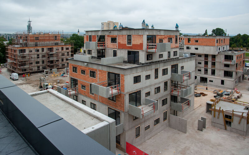 Die teilweise geförderten Wohnungen werden in Miete mit Kaufoption oder auch im Soforteigentum vergeben. Diese sind zwischen 52 m² und 105 m² groß (2-4 Zimmer) und verfügen über moderne Grundrisse. Aufgrund der Bauweise gibt es pro Geschoss maximal 3 Nachbarn. Ebenso wurde darauf geachtet, dass es im Quartier keine dunklen Gänge gibt. Jede Wohnung hat einen Garten oder einen Balkon. Die Anlage wird im Frühjahr 2023 bezugsfertig sein.