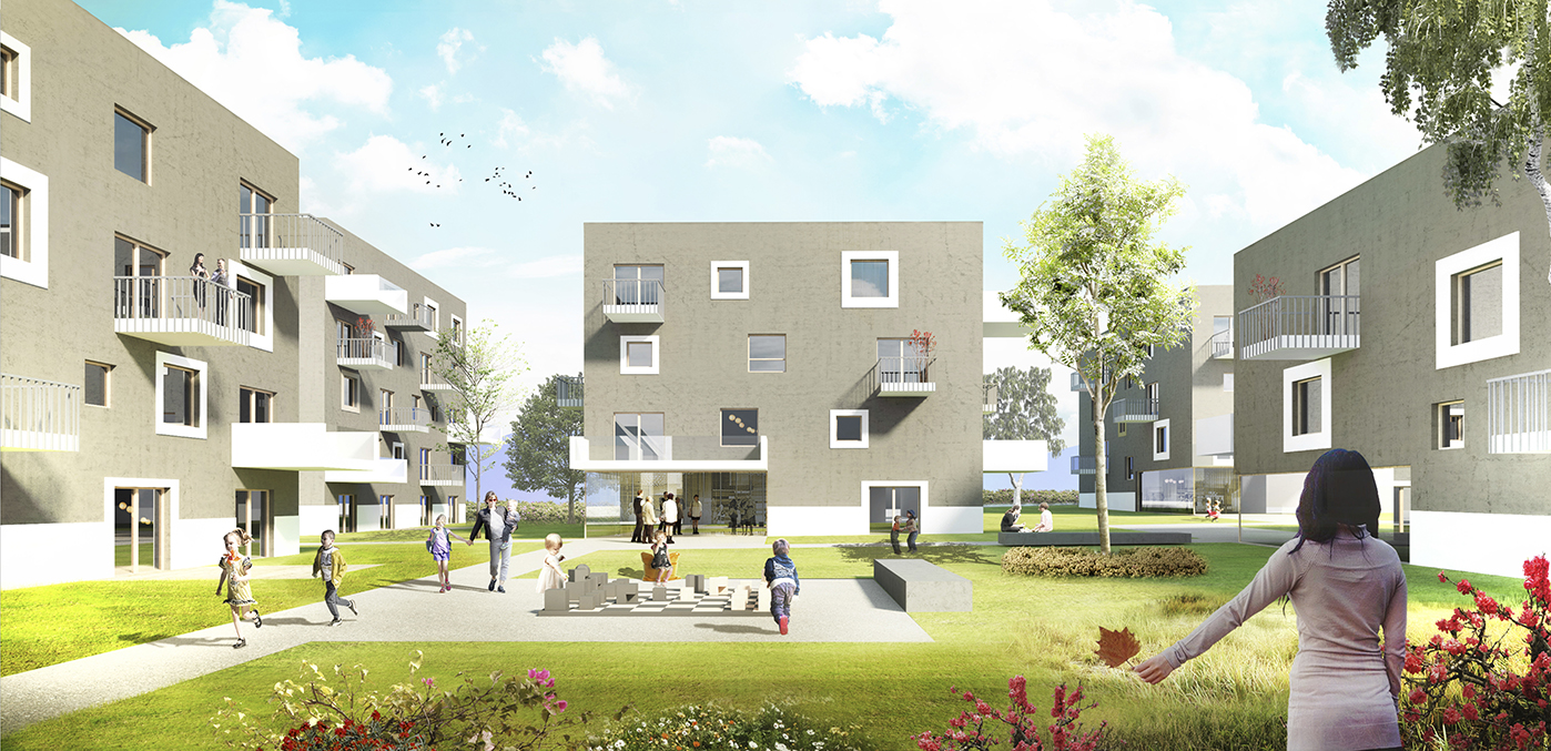 Wasch- und Trockenraum befinden sich ebenso im Kellergeschoß wie der Kinderwagenraum und der Müllraum. In der Außenanlage befinden sich Wäscheplätze und Kinderspielplätze. Die vier- und fünfgeschossigen Häuser, die von x achitekten ZT GmbH geplant wurden, verfügen über 46 Pkw-Abstellplätze in der Tiefgarage und 14 Pkw-Abstellplätze im Freien. Zusätzlich zu den vier Punkthäusern entsteht auf dem Areal auch ein Kindergarten.