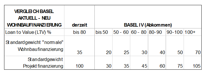Allerdings: nicht jede Immobilienfinanzierung wird nach dem Basel-Regelwerk gleichbehandelt. Gewerbeimmobilien werden als riskanter als Wohnimmobilien angesehen. Es wird auch zwischen Unternehmens- und Projektfinanzierung unterschieden: Der Projektfinanzierung werden Immobilienprojekte zugerechnet, bei denen die Kreditrückzahlung nur von einem Projekt abhängig ist (IPRE „Income Producing Real Estate“). Die hypothekarische Besicherung kann risikomindernd angesetzt werden – allerdings nur solange die Mitgliedsstaaten (Aufsichtsbehörden) die Unterschreitung einer festgelegten Ausfallsquote nachweisen können. Mit Basel III wurde ab 2013 auch die Klasse der „spekulativen“ Immobilienfinanzierung eingeführt, als solche werden Eigentumsprojekte während der Bauphase eingestuft. Bei der Interpretation der Definition der „spekulativen Immobilienfinanzierung“ sind aber Spielräume gegeben.
