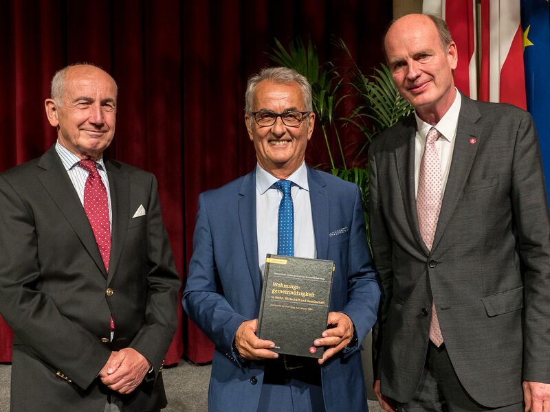 Über 400 Personen aus ganz Österreich nahmen am diesjährigen Verbandstag der gemeinnützigen Bauvereinigungen teil. Heuer war das Bundesland Wien Gastgeber. Der interne Teil des Verbandstages 2019 stand ganz im Zeichen von Neuerungen. Satzungsgemäß wurden Verbandsvorstand und -aufsichtsrat neu gewählt. Die Delegierten der Jahresversammlung wählten einstimmig Dipl.-Ing. Dr. Bernd Rießland (SOZIALBAU AG) zum Verbandsobmann, Dipl.-Ing. Herwig Pernsteiner (ISG) zum Verbandsobmann-Stellvertreter. Dir. Frank Schneider (LAWOG) und Mag.a Michaela Steinacker (ALPENLAND) komplettieren als Mitglieder den Verbandsvorstand. Ebenso wurde der Verbandsaufsichtsrat mit den Stimmen aller Delegierten gewählt. Die scheidenden Obmänner wurden mit dem Ehrenring, dem höchsten Ehrenzeichen des Verbandes, ausgezeichnet. Karl Wurm wurde nach 27 Jahren Obmannschaft und Alfred Graf nach sechs Jahren als Obmannstellvertreter verabschiedet.