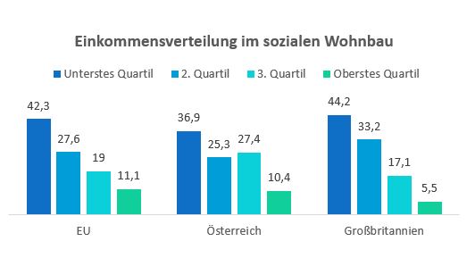 Beim genaueren Hinsehen ergeben sich jedoch recht deutliche Unterschiede in den beiden Systemen. Während die gegenwärtige Ausrichtung des sozialen Wohnbaus in Großbritannien vor allem auf untere Einkommen und sozial benachteiligte Bevölkerungsgruppen abzielt, steht in Österreich weiterhin die Wohnversorgung von unteren und mittleren Einkommen im Vordergrund.