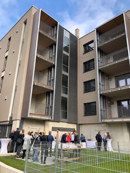 Die 27 Wohneinheiten des Gebäudes in der Gendarmeriegasse sind durch das Land Kärnten wohnbaugefördert und in 2- oder 3-Zimmer-Varianten zwischen 50 und 70m² verfügbar. Die Erdgeschoßwohnungen haben eigene Gartenanteile. Das Gebäude verfügt des Weiteren über eine Tiefgarage. Auch in puncto Energie wurde an die Umwelt gedacht: Eine CO2-neutrale Pellets-Heizanlage, unterstützt durch Solarenergie, sichert umweltfreundliche Wärmegewinnung. {cwgallery}