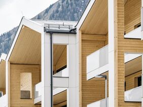 Ing. Alexander Zlotek, zuständig für die Geschäftsbereichsleitung Technik der Alpenländischen, erklärt die Intentionen beim Projekt im Zillertal: „Wir haben uns generell die Schaffung von ökologischem, nachhaltigem, ökonomischem und vor allem leistbarem Wohnraum zum Ziel gesetzt. In Tux wurde eine Wohnanlage in Massivholzbauweise und Passivhausqualität, entsprechend den höchsten Qualitätsstandards, realisiert. Mit dem Bau wurde im März 2018 begonnen. Durch modulares Planen und serielles Vorfertigen der Bauteile konnte eine kurze und optimierte Bauzeit erreicht werden. Trotz des harten und langen Winters wurden die Wohnungen bereits im März 2019 an die Bewohner übergeben.“ Heuer wurde das Projekt mit dem klimaaktiv Gütesiegel Gold ausgezeichnet. Die Anlage zeigt, dass Holz nicht nur im Einfamilienhaus eingesetzt werden kann, sondern auch hervorragend für mehrgeschossige Bauten geeignet ist.