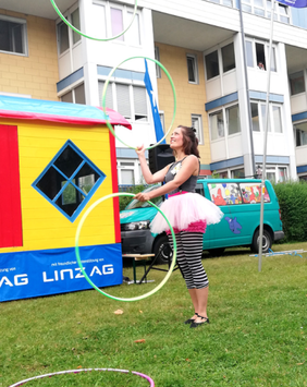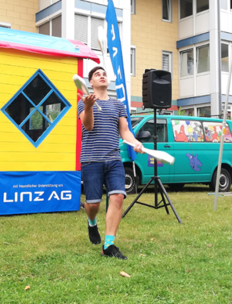 In Kooperation mit dem Kinderkulturzentrum Kuddelmuddel und mit freundlicher Unterstützung der Stadt Leonding wurde am Samstag, 29.8.2020 die GIWOG-Siedlung „Im Doblerholz“ für einen Tag zur Zirkusarena!