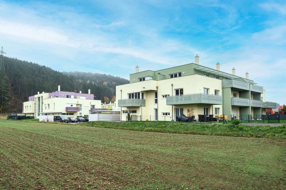 Der Wohnbau liegt nahe dem Europaschutzgebiet, welches unter anderem den Semmering, die Gahns und die Rax beherbergt und somit zum Erholen in der Natur einlädt. Die Wohnungen verfügen entweder über Eigengärten, großzügige Balkone oder weitläufige Terrassen, die den Bewohnerinnen und Bewohnern einen traumhaften Panorama-Blick über die Berge bieten.