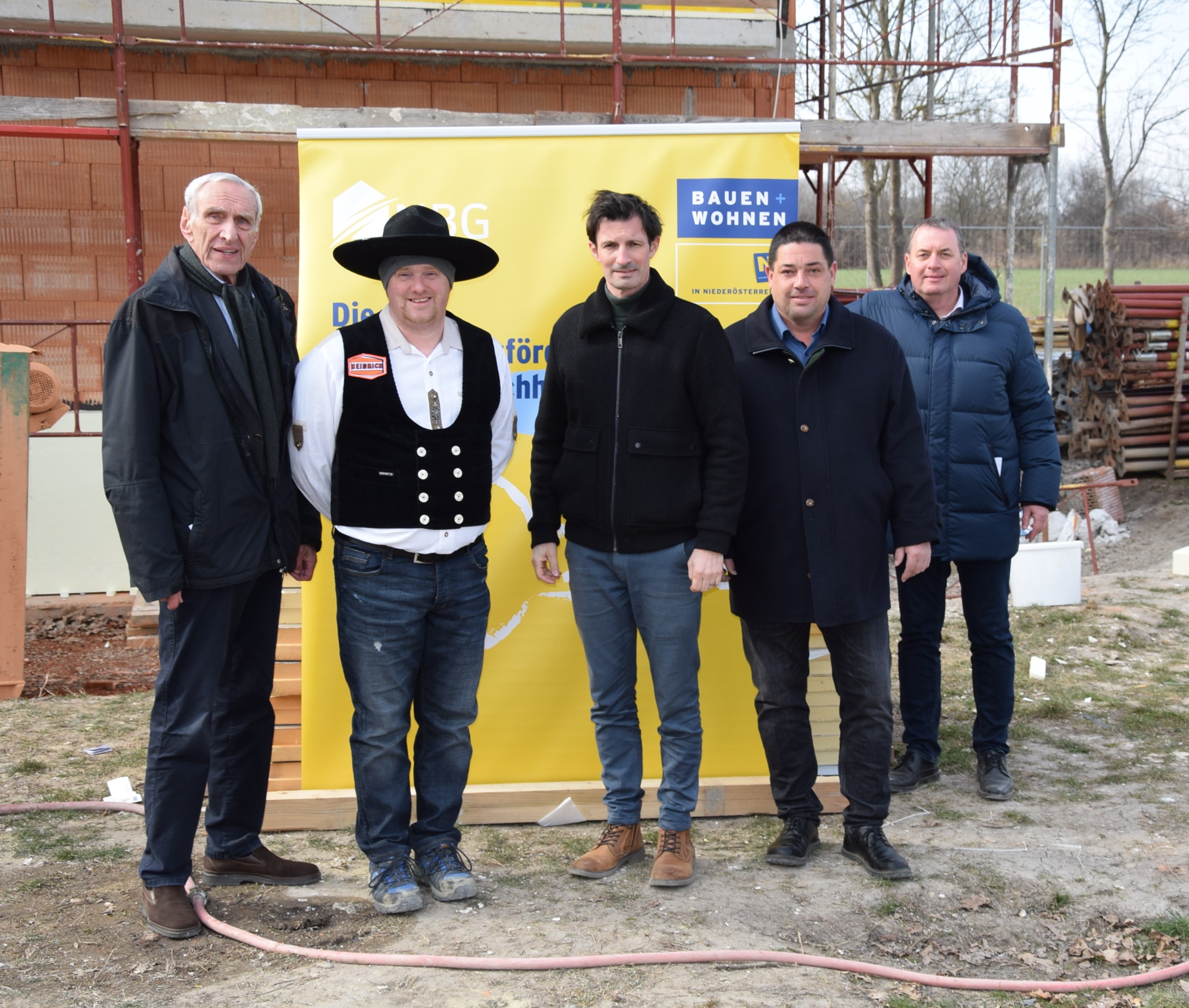 Eine neue Wohnhausanlage der NBG mit 14 Mietwohnungen findet ihren Platz auf einem Grundstück in Weiden an der March-Baumgarten. Um die Freude über dieses Projekt zu verbildlichen, fand vor kurzem eine Gleichenfeier mit Direktor Walter Mayr, Thomas Steinmann, Landtagsabgeordneter René Lobner, Bürgermeister Markus Lang und Norbert Schandl statt. „Der gemeinnützige Wohnbau ist eine tragende Säule für die Konjunktur. Dadurch wird in Niederösterreich ein Investitionsvolumen von 1,8 Milliarden Euro ausgelöst und 30.000 Jobs gesichert“, so Wohnbau-Landesrat Martin Eichtinger bei der Gleichenfeier.