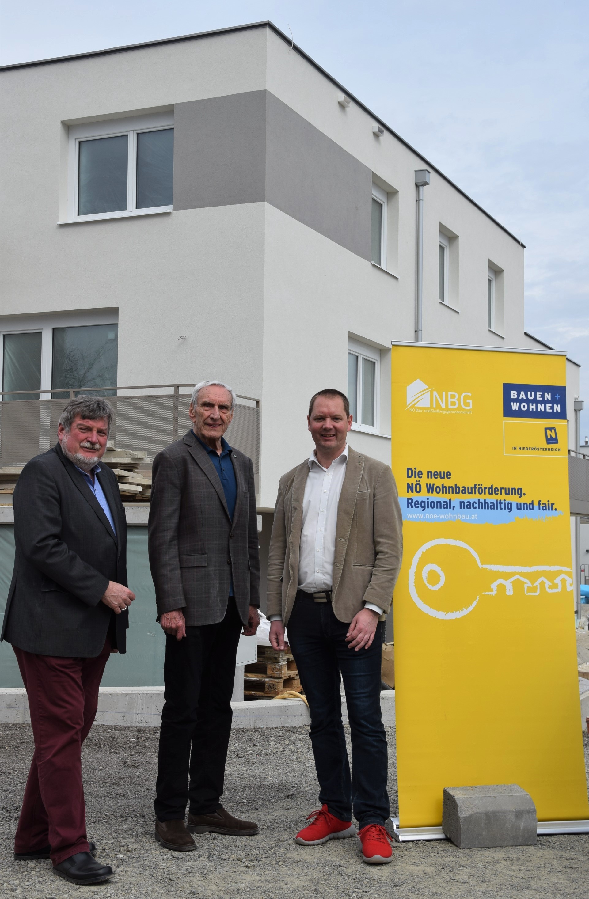 Neben dem Spatenstich in Loimersdorf, fand auch vor Kurzem der Baustellenbesuch der Wohn- und Reihenhausanlage in Böheimkirchen statt. Dort werden derzeit 68 Wohnungen und sieben Reihenhäuser in Miete mit Kaufrecht von der NBG gebaut. Die Wohnungen verfügen über eine Fläche von circa 51 bis 93 m2 und die Reihenhäuser über circa 105 m2.