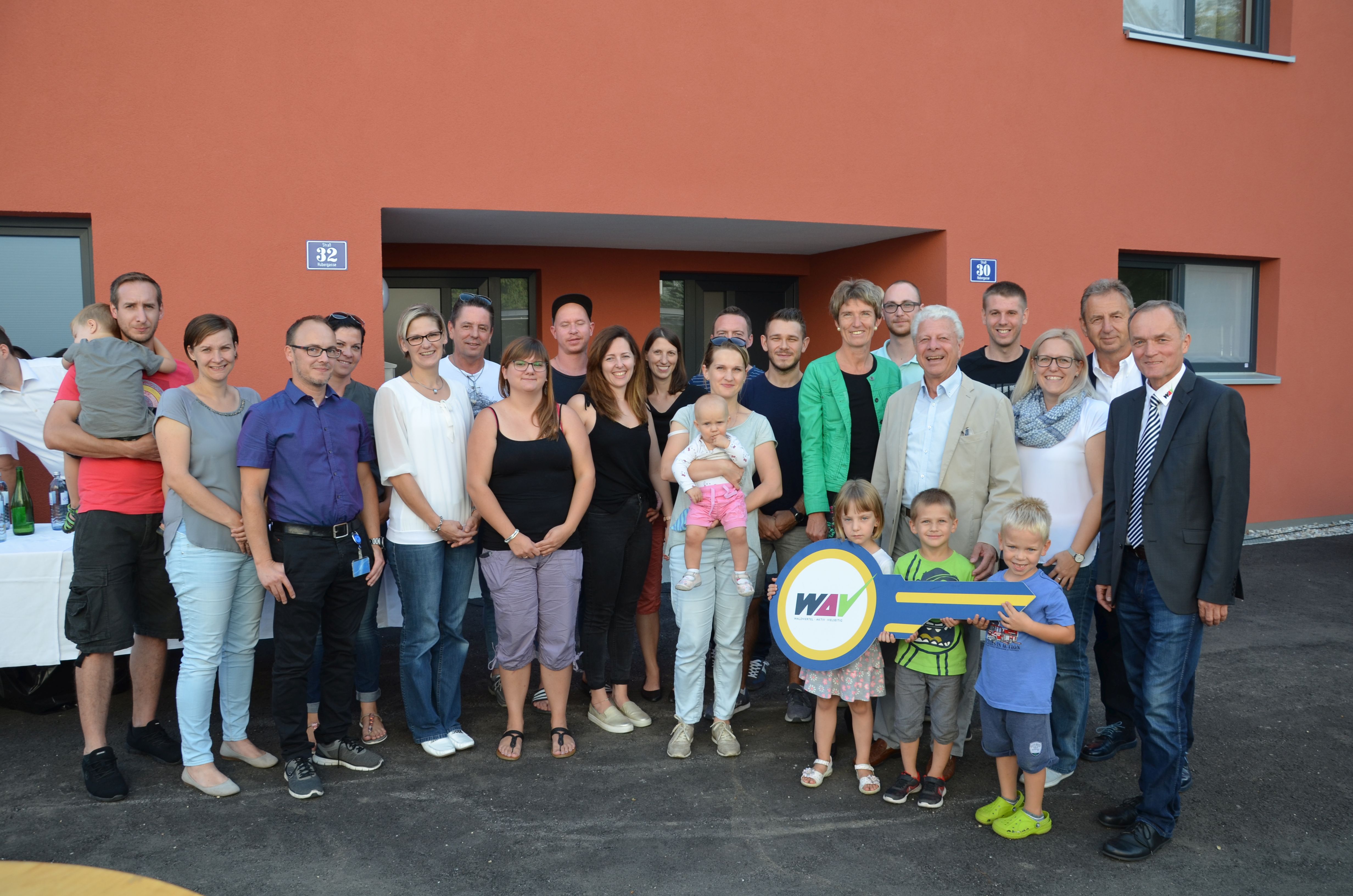 Auch in Sitzendorf hatte die WAV Grund zu feiern – und zwar gleich doppelt. Bereits im Februar wurde eine dritte Reihenhausanlage in Betrieb genommen, im Juni folgte eine Anlage im Rahmen der Initiative „Junges Wohnen“. 14 Wohnungen mit je 54 m2 Wohnnutzfläche, einer Terrasse oder einem Balkon sowie jeweils zwei Parkplätzen pro Wohneinheit umfasst das Junge Wohnen in Sitzendorf. Die speziellen Fördermittel des Landes Niederösterreich ermöglich einen besonders kostengünstigen Mietpreis, der von jungen Bürgerinnen und Bürgern mit einem Höchstalter von 35 in Anspruch genommen werden kann. Das Architektenbüro DI Friedrich Pluharz aus Wien achtete bei der Errichtung auf eine Niedrigstenergiebauweise.