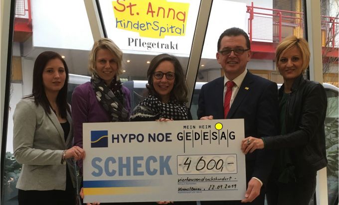 Die insgesamt 450 Lose, die im Rahmen einer Weihnachtstombola von Kolleginnen und Kollegen der GEDESAG verkauft wurden, sorgten nicht nur für grandiose Preise auf der Weihnachtsfeier, sondern auch für einen beträchtlichen Erlös. Auf Beschluss des GEDESAG- Vorstands verdoppelte das Unternehmen den Betrag noch einmal und konnte so dem St. Anna Kinderspital, das durch Pflegedirektorin Frau Dir. Barbara Hahn vertreten war, einen Scheck mit einer Summe von über €4.600 zur Unterstützung überreichen!
