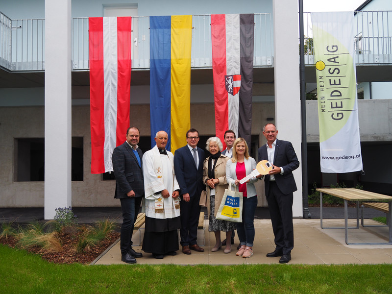 Vor Kurzem lud die GEDESAG zur feierlichen Übergabe der Wohnhausanlage „St. Leonhard X A“ in Niederösterreich ein. Mit dabei waren unter anderem Bürgermeister Hans-Jürgen Resel, zweiter Präsident des NÖ Landtages Gerhard Karner und der GEDESAG Vorstand Peter Forthuber. "Durch das Projekt ´St. Leonhard X A´ am Hauptplatz, wurde die Einwohnerzahl erheblich erhöht. Dies trägt positiv zur Entwicklung des Ortskernes bei", so Bürgermeister Hans-Jürgen Resel.
