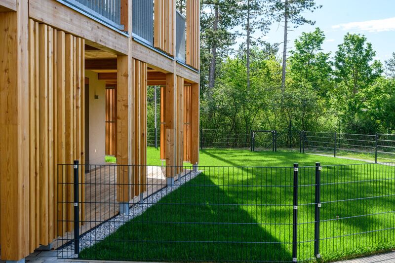 Die neuen Häuser schließen unmittelbar an jene 29 Wohnungen im Holzwohnbau an, die bereits 2019 errichtet worden waren. Erbaut wurde die moderne Anlage in Niedrigenergiebauweise. Mit der Übergabe des zweiten Bauteils komplettierte die FRIEDEN das einzigartige Holzwohnbau-Projekt auf halbem Weg zwischen Neunkirchen und Wr. Neustadt. Die Wohnhausanlage „Am Waldstrand“ steht prototypisch für „Wohnen im Einklang mit der Natur“.