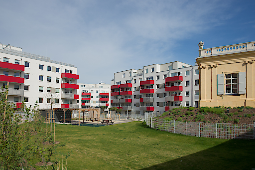 Wohnhausanlage mit Spielplatz und Pavillon ©Wien-Süd