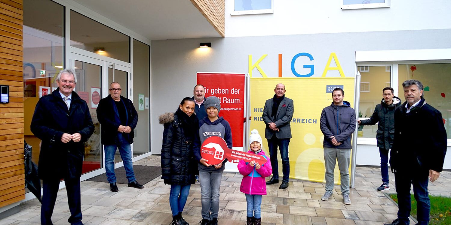 Die Baugenossenschaft Mödling zelebrierte Ende Oktober 2020 die Fertigstellung eines ganz besonderen Projekts: Ein Kindergarten sowie 29 geförderte Wohnungen unter einem Dach stellen ein weiteres ein Novum in der Geschichte der Baugenossenschaft dar.