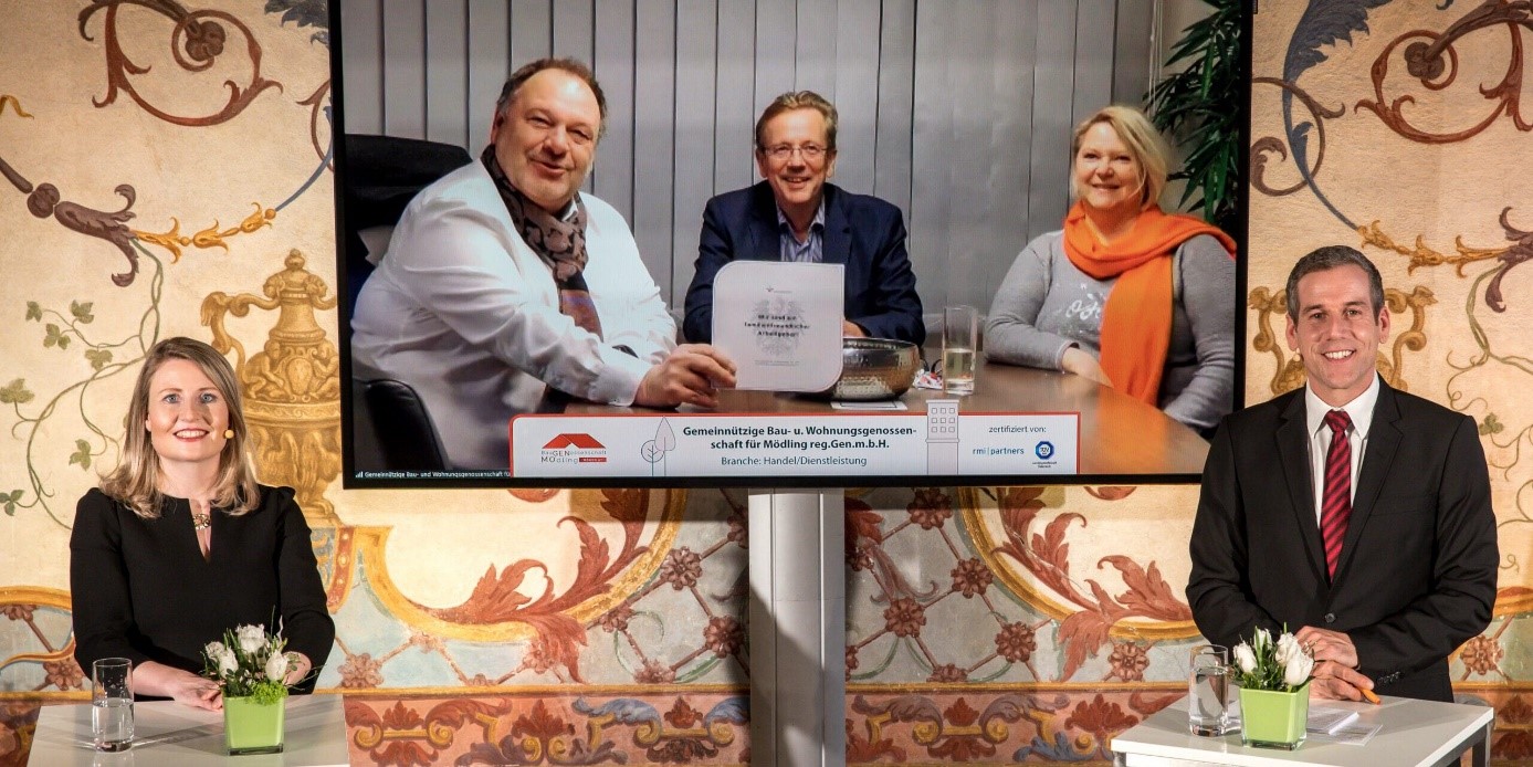 Bei der Verleihung an familienfreundliche Unternehmen und Hochschulen wurden 2021 wieder die vorbildhaftesten Arbeitgeberinnen und Arbeitgeber für ihr außerordentliches Engagement für die Vereinbarkeit von Beruf und Familie ausgezeichnet. Unter den 80 österreichischen Unternehmen war auch die Baugenossenschaft Mödling, welche im Rahmen des staatlichen Gütezeichens „berufundfamilie“ das Zertifikat bei einer feierlichen Online-Verleihung von Familienministerin Susanne Raab entgegennehmen durfte.