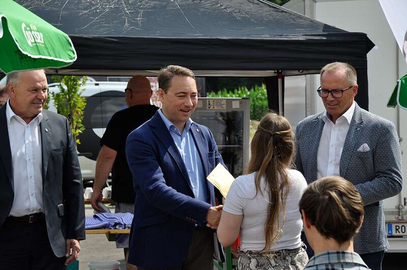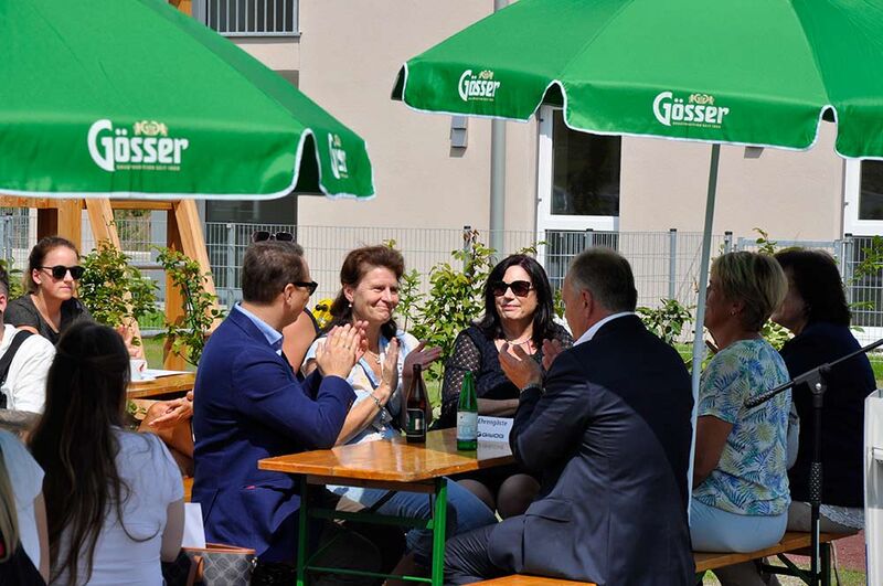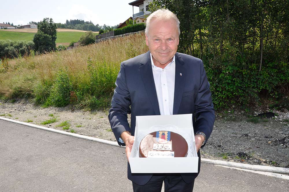 Die neuen Bewohnerinnen und Bewohner der Schatzsiedlung in Lacken, Feldkirchen durften sich über die Schlüssel zum neuen Zuhause freuen. Die GIWOG errichtete dort drei Wohnhäuser mit insgesamt 27 Mietwohnungen. Unter Einhaltung aller Corona-Vorschriften fand die Schlüsselübergabe im schönen Außenbereich der Wohnanlage statt. Neben LH-Stv. Manfred Haimbuchner war auch Vizebürgermeister Wolfgang Seyr vor Ort, um die neuen Gemeindemitglieder mit liebevoll gestalteten Torten willkommen zu heißen.