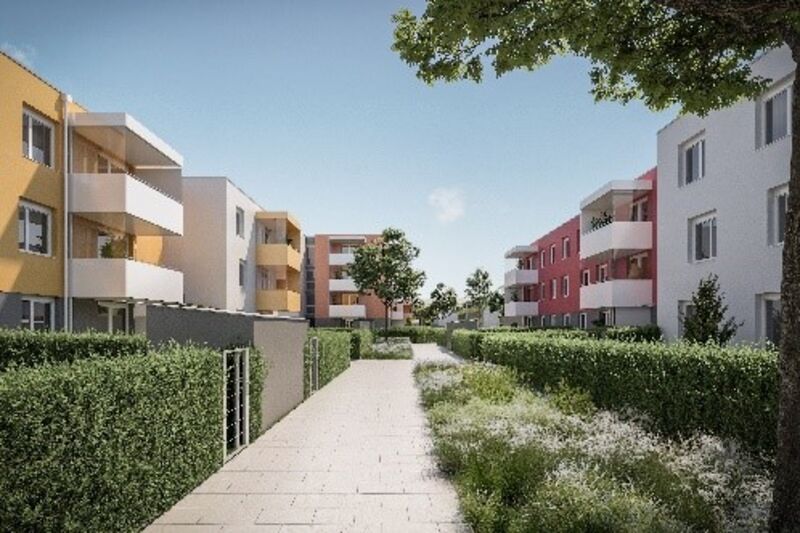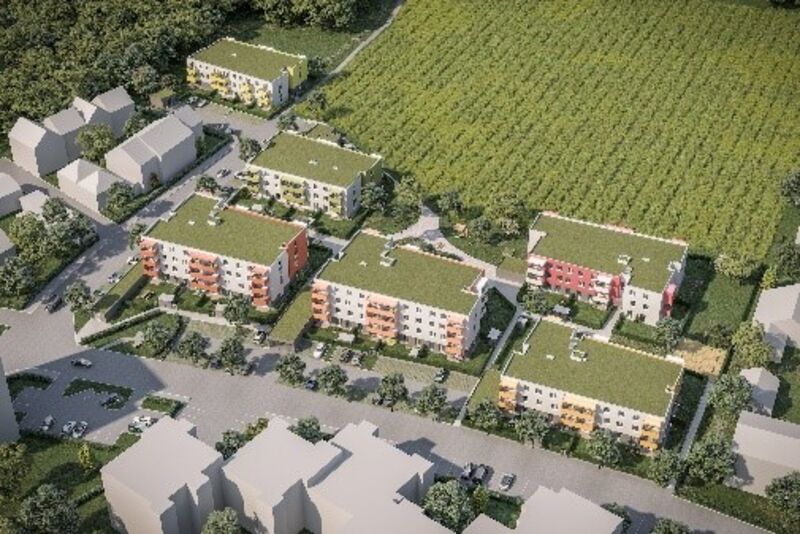 Die 98 geförderten Mietwohnungen, die sich auf vier Wohnhäuser verteilen und in zwei Bauabschnitten errichtet werden, kombinieren Modernität mit Komfort. Der Wohnungsmix umfasst 2-, 3- und 4-Zimmer-Wohnungen jeweils mit einer Loggia von etwa 8 m2 oder einem 37 m2 bis 173 m2 großen Garten mit Terrasse. Zusätzlich zu dem Platz innerhalb der eigenen vier Wände wird den Bewohnern auch ein Einlagerungsraum je Wohnung im Keller zur Verfügung gestellt.