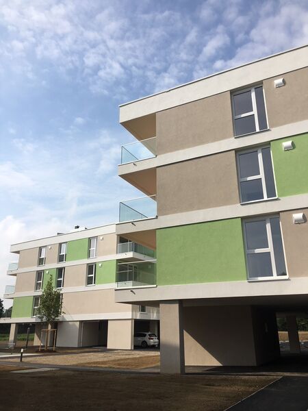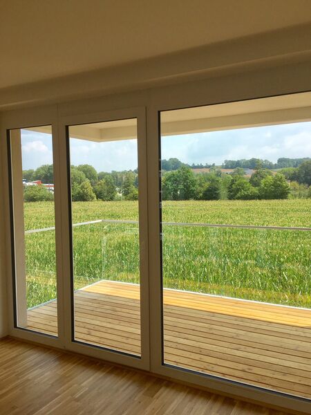 Die Bewohnerinnen und Bewohner der Wohnhäuser in der Natur können ab sofort den idyllischen Ausblick von ihren Loggia- bzw. Balkonflächen auf Felder, Wiesen und Wälder genießen. Für gemütliche Abende im Winter sorgt die Kombination aus einer Vollwärmeschutz-Dämmfassade und einer gasbetriebenen Zentralheizung mit Solarunterstützung. Die nötige Frischluft bekommen die Mieterinnen und Mieter von den dezentralen Wohnraumlüftungen mit Wärmerückgewinnung.