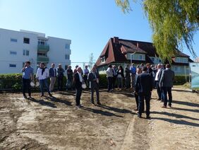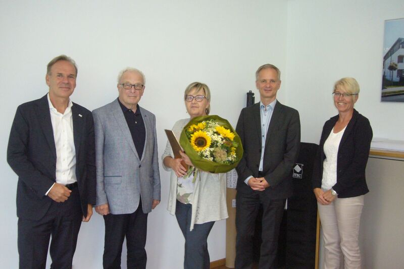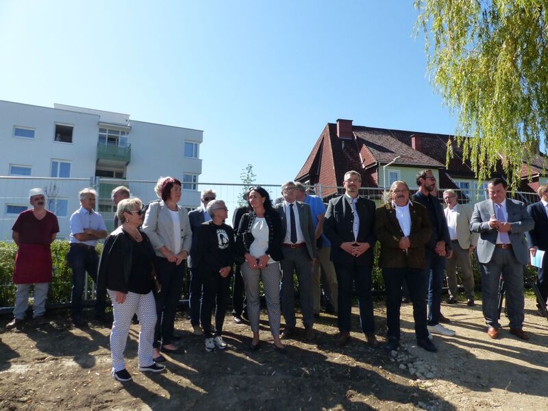 Symbolisch für einen Neuanfang verabschiedete sich bei einem Spatenstich die GSG Anfang September von ihrer ehemaligen Leiterin der kaufmännischen Verwaltung Frau Eva Grafinger. Sie wurde im Zuge der Schlussbesprechung der Verbandsprüfung 2018 mit dem „silbernen Ehrenzeichen für 40 Jahre im Dienst der Gemeinnützigen“ geehrt. Frau Ingrid Lackner (Vertreterin Land OÖ) war ebenfalls anwesend und bedankte sich für die Dienste für tausende Oberösterreicherinnen und Oberösterreicher.
