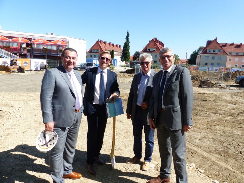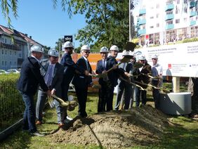 Gegenüber der bereits bezogenen Wohnanlage am früheren Schulstandort „Am Schulhang 1-7“ entstehen nun in der Max-Winter-Straße/Schulstraße, auf dem ehemaligen Areal der Sporthalle, 43 Mietwohnungen. Jeder Wohneinheit ist zudem ein Tiefgaragenabstellplatz zugeordnet. Die nahegelegene Bushaltestelle ermöglicht eine Anbindung an den öffentlichen Verkehr. Anwesend zum Spatenstich waren Rudolf Kroiß, Bürgermeister Rudolf Vogtenhuber und Vertreter der Marktgemeinde Lenzing. Für musikalische Unterhaltung sorgte die Werkskapelle Lenzing, Pfarrer Johann Ortner führte die Segnung durch. {cwgallery}