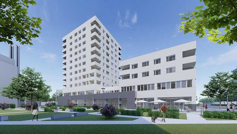Bei dem neuen Projekt handelt es sich um einen elf- und ein viergeschossigen Bauteil mit insgesamt 64 modernen Wohnungen. Die Wohnnutzfläche beträgt zwischen 52m² und 76m². Die Wohnungen werden alle mit Loggien ausgestattet – das Erd- und Obergeschoss wird für Sonder- und Gewerbenutzung gestaltet. Für die neue Wohnhausanlage wird außerdem eine Photovoltaik-Anlage errichtet, sowie ein innovatives Mieterstrommodell eingeführt. So kann die Energie effizient genutzt und die Stromkosten für die Verbraucher deutlich gesenkt werden.