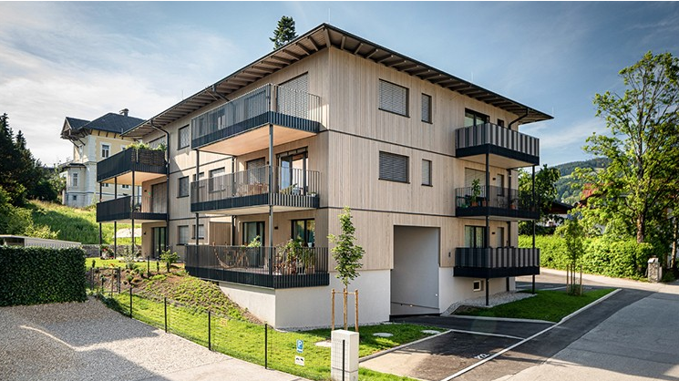 Mit vier geschössigigen Projekt "Wohnen am Buchberg" überzeugte die WS-O mit einem Massivholz-Bau. Die 55 neuen Wohnungen stehen passend neben förstlichen Bildungszentrum in Traunkirchen. Warum Holz als Material jetzt auch im mehrgeschossigen Wohnbau immer häufiger eingesetzt wird, hat viele Gründe. Holzbauten haben eine kurze Bauzeit. Durch die Vorfertigung von Wand und Deckenelementen verlagert sich ein Teil der Produktion von der Baustelle in die Werkhalle. Das spielt in der touristisch geprägten Region rund um den Traunsee eine entscheidende Rolle.