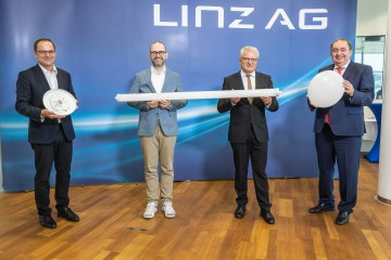 v.l.n.r.: Bernd Freisais, Geschäftsführer der LINZ AG-Tochter LINZ-ENERGIESERVICE GmbH-LES, Gemeinderat Dietmar Prammer, GWG-Aufsichtsratsvorsitzender, Bürgermeister Klaus Luger und Generaldirektor Erich Haider © LINZ AG/Bayer