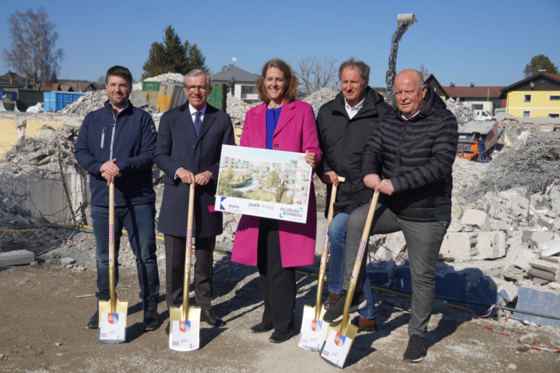 In Seekirchen hat die SALZBURG WOHNBAU erst kürzlich ein besonderes Projekt gestartet: In Kooperation mit Kainz Immoblilien werden insgesamt 185 neue Wohneinheiten erbaut, mit einem besonderen Fokus auf Nachhaltigkeit. Beim feierlichen Spatenstich für das Großprojekt waren zahlreiche Ehrengäste vor Ort mit dabei, darunter auch Landeshauptmann Wilfried Haslauer, Wohnbaulandesrätin Andrea Klambauer, Bürgermeister Konrad Pieringer, Geschäftsführer der Kainz Gruppe Rudolf Kainz und SALZBURG Wohnbau–Geschäftsführer Roland Wernik.