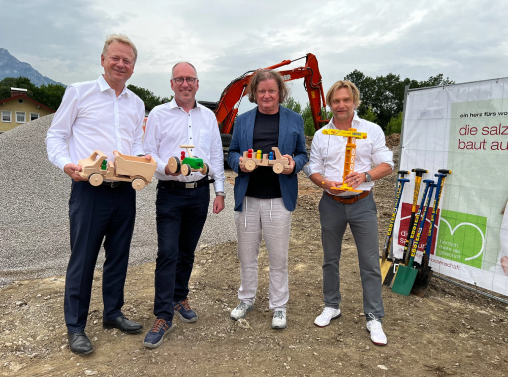 Ein weiteres tolles Projekt steht bei DIE SALZBURG gerade in die Startlöcher: Erst kürzlich wurde der Baubeginn des Kindergarten Gries in Hallein mit dem Spatenstich eingeläutet. Der zukünftige Kindergarten zählt als der modernste in der Stadtgemeinde Hallein. Demnach ist die Freude bei der Gemeinde, aber auch dem Architekten des Projekts, Karl Thalmeier, und dem Team der Firma Ebster Bau besonders groß.