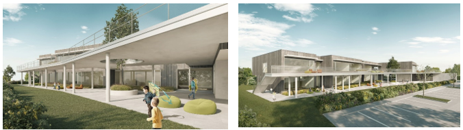 Simulationen des Kindergarten Gries zeigen, wie dieser nach Abschluss der Bauarbeiten aussehen wird. © DIE SALZBURG
