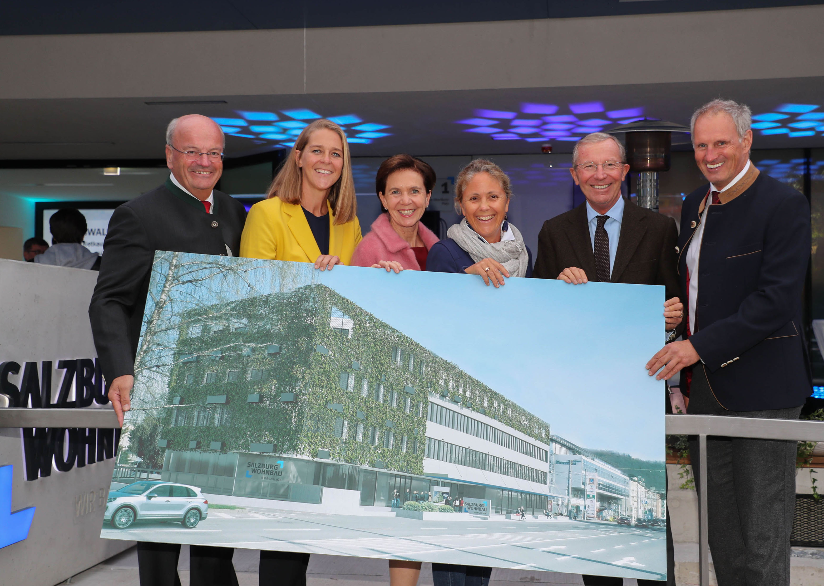 Nach der Generalsanierung und dem Ausbau der Firmenzentrale der Salzburg Wohnbau präsentiere sie sich nun als erstes Green-Building in der Stadt. Bei einem Eröffnungsfest luden die beiden Geschäftsführer Christian Struber und Roland Wernik, Branchenvertreterinnen und Branchenvertreter, Politikerinnen und Politiker, Mitarbeiterinnen und Mitarbeiter, Kooperationspartner und Freunde des Hauses ein. Eine Photovoltaikanlage für die Gewinnung von umweltfreundlicher Energie sowie Kletterpflanzen, die den Großteil des Gebäudes umranken, unterstreichen das Green-Konzept. Die Konzernzentrale soll ein Symbol für die Öko-Gedanken des gemeinnützigen Bauträgers sein.