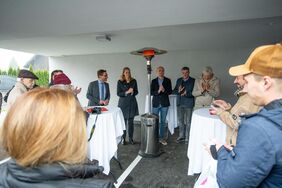v.l.n.r: Wolfgang Buchegger (Architekturbüro Salmhofer), AK-Präsident und Vize-Bürgermeister Peter Eder, Bürgermeister Fritz Kralik (Gemeinde Bürmoos), Georg Maltschnig (Aufsichtsratsvorsitzender der Wohnbau Bergland), Landesrätin Alexandra Klambauer, Philipp Radlegger (Obmann/GF Wohnbau Bergland), Christian Salmhofer (Architekturbüro Salmhofer) und Franz Hirscher, Christoph Mühlbacher (beide FBS Bau) © Agentur Dreirad