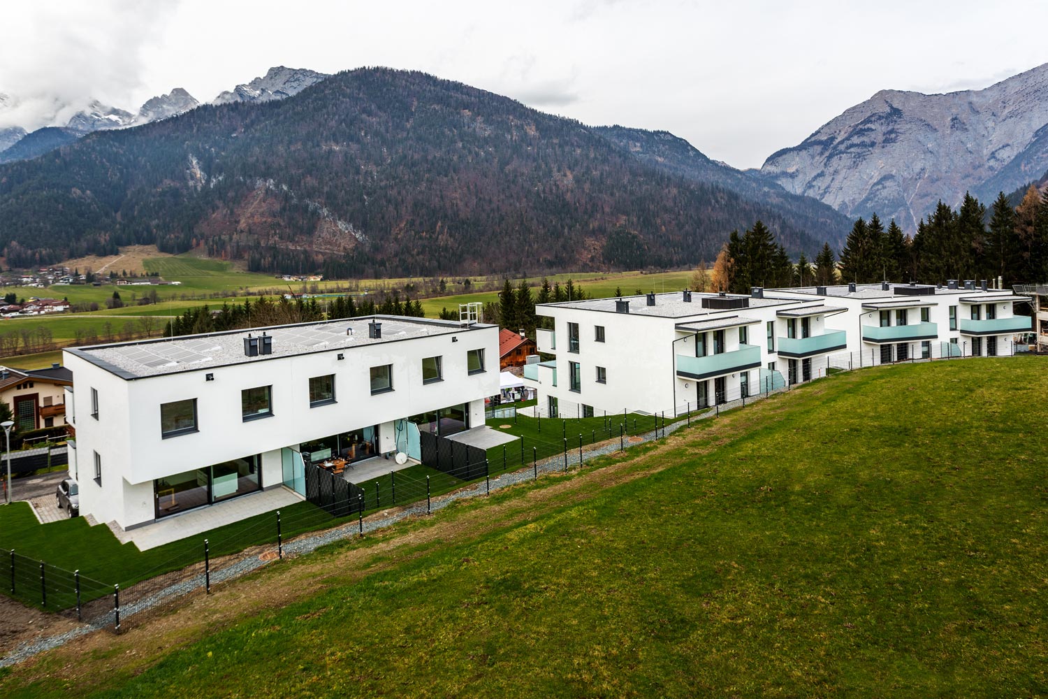Die neu errichtete Anlage der Wohnbau Bergland in Wiesing besticht nicht nur durch ihre Aussicht. ©Wohnbau Bergland