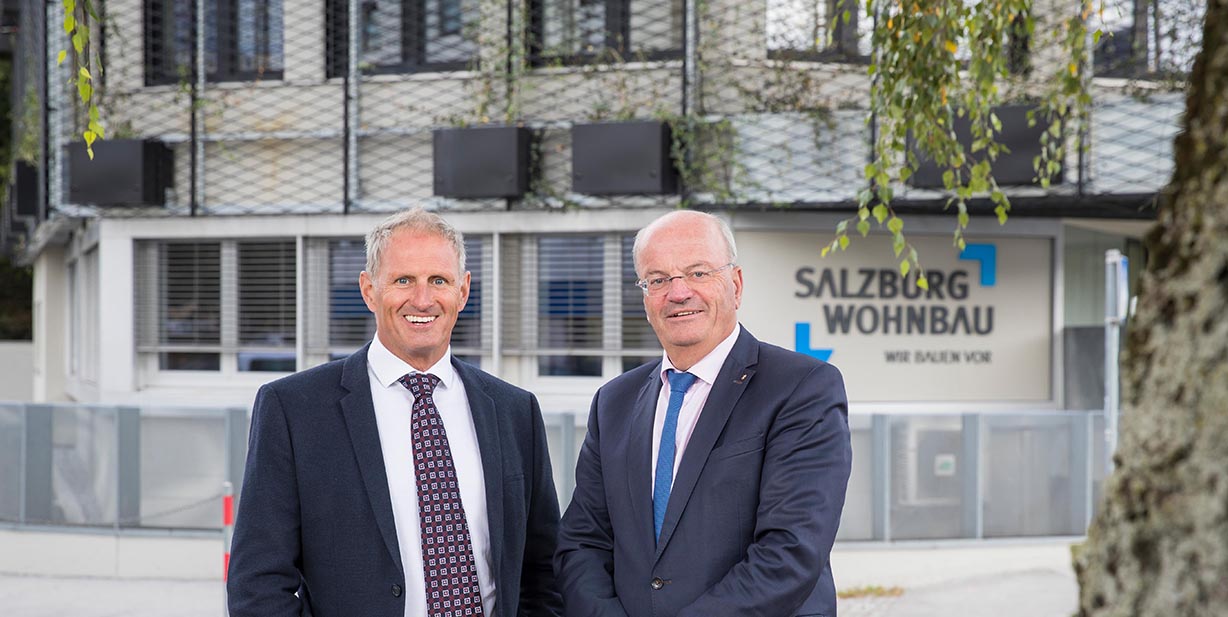 Die Sanierung der Firmenzentrale stellte die Salzburg Wohnbau und das ausführende Architekturbüro „kofler architects“ vor neue Herausforderungen. „Wir brauchten mehr Platz, ein Neubau hätte aber zusätzliche Bodenfläche versiegelt. So entschlossen wir uns, das bestehende Gebäude zu renovieren und einen Parkplatz zu überbauen, um mehr Bürofläche zu erhalten und das erste Green Building in der Stadt Salzburg zu errichten. Umso schöner, wenn das jetzt international für Anerkennung sorgt“, so die beiden Salzburg Wohnbau-Geschäftsführer Christian Struber und Roland Wernik.