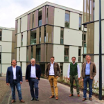 Passend zum Schulstart hat die gswb drei neue Wohnhäuser mit insgesamt 24 Wohnungen bei dem neuen Bildungscampus errichtet und an die Mieterinnen und Mieter übergeben.