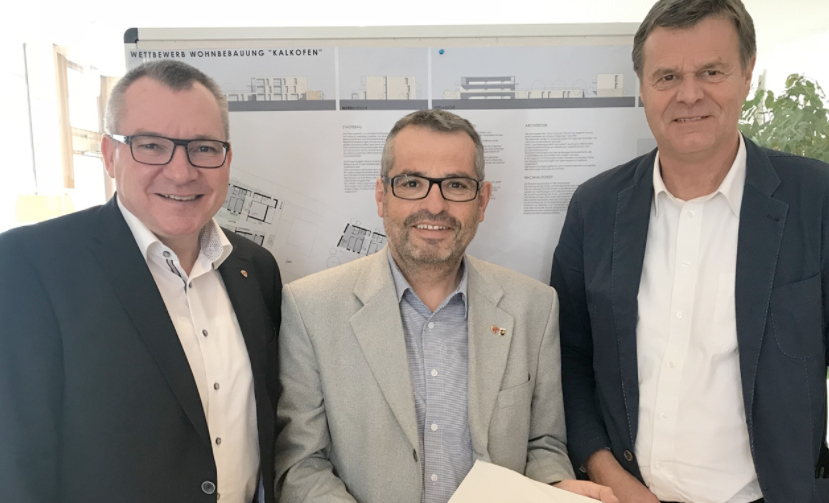 Wohnbaulandesrat Johannes Tratter, Bürgermeister Josef Walch und TIGEWOSI-Geschäftsführer Franz Mariacher sehen der Realisierung der 5-Euro-Wohnanlage in Inzing mit Freude entgegen. © Land Tirol