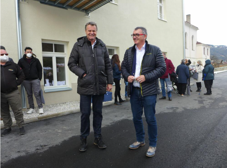 Um eine solch besondere Übergabe ausgiebig zu feiern, versammelten sich auch prominente Persönlichkeiten. Bürgermeister Andreas Schmid, der Gemeindevorstand in Person von Herrn Christian Hosp und der Geschäftsführer der Tigewosi, Franz Mariacher, übergaben unter strenger Einhaltung der derzeitigen Covid-19 Vorschriften die Schlüssel an die zukünftigen Mieterinnen und Mieter. Mehr als 100 Jahre Geschichte stecken in diesem Gebäude und nun werden viele Menschen hier ein glückliches Zuhause finden.