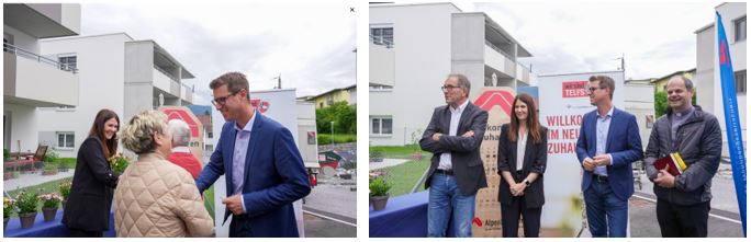 „Wir freuen uns sehr, diese qualitätsvollen Wohnungen zu leistbaren Konditionen übergeben zu können“, so Bürgermeister Christian Härting und bedankt sich des Weiteren für die „ausgezeichnete Realisierung und Zusammenarbeit“ bei der ALPENLÄNDISCHEN. Nicht weniger Wertschätzung bringen die beiden Geschäftsführer der Alpenländischen, Markus Lechleitner und Cornelia Springer, auf: „Unser besonderer Dank gilt der Gemeinde Telfs für ihr Vertrauen sowie allen Projektpartnerinnen und Partnern und Mitwirkenden für die hervorragende Teamarbeit. Wir freuen uns sehr über das gelungene Ergebnis und wünschen den Bewohnerinnen und Bewohnern ein gutes nachbarschaftliches Zusammenleben.“