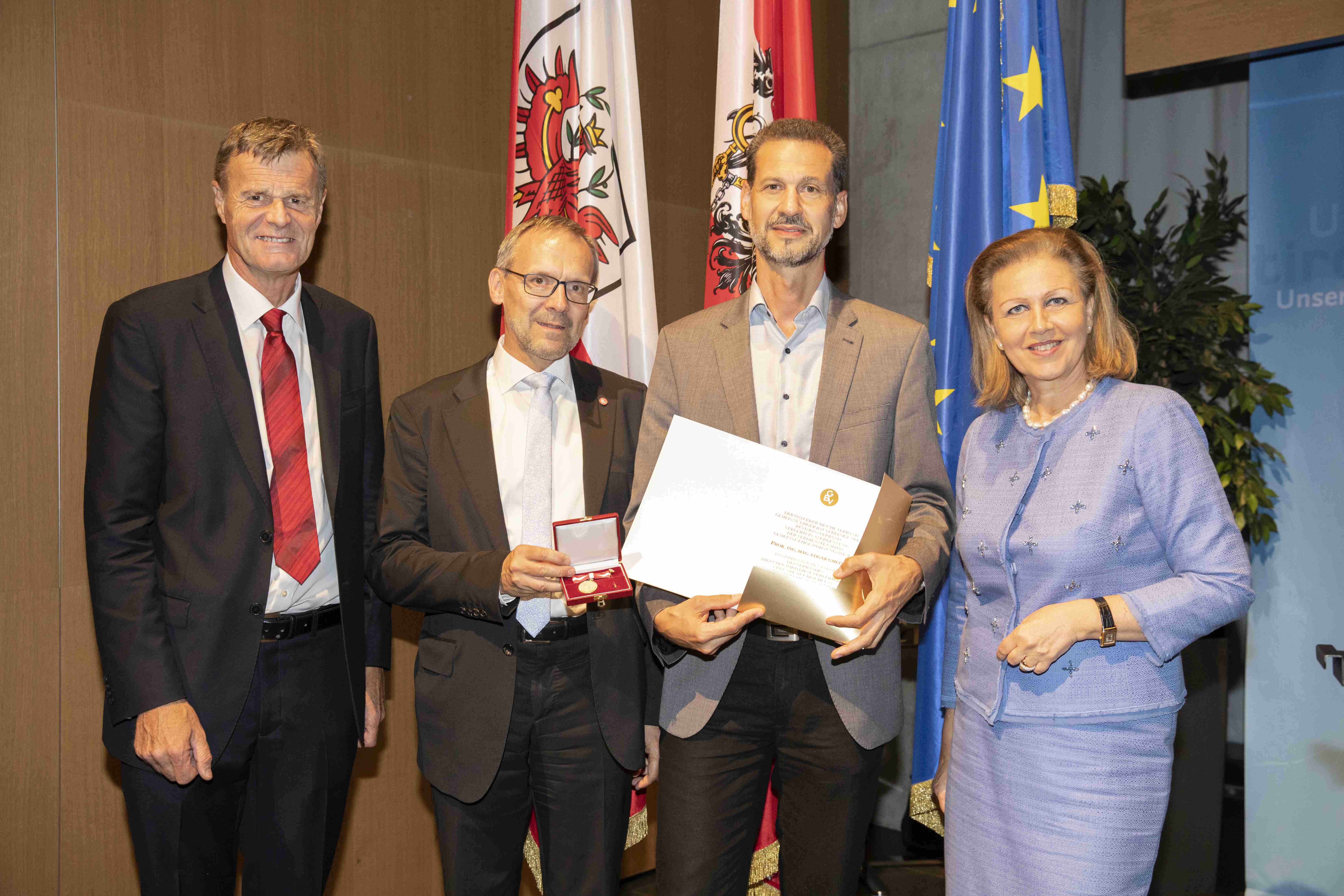 V.l.n.r. Dir. Franz Mariacher, Verbandsdirektor Alois Feichtinger, Prokurist Edgar Gmeiner, Landesrätin Patrizia Zoller-Frischauf © TIGEWOSI