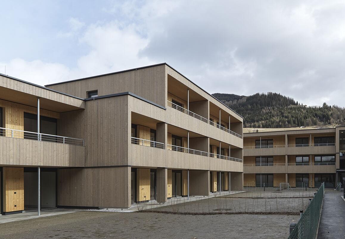 Die neu errichteten Wohnungen in Mühlbachl gliedern sich in acht 2-Zimmer-Wohnungen, 14 3-Zimmer-Wohnungen und vier 4-Zimmer-Wohnungen. So wurde optimal auf die Anforderungen und Bedürfnisse der zukünftigen Mieterinnen und Mieter eingegangen. Die drei hochwertigen, energieeffizienten Gebäude wurden mit dem klimaaktiv GOLD Standard ausgezeichnet. Zur Verfügung stehen Eigentums- und Mietwohnungen mit Kaufoption. Durch die Entscheidung für den Baustoff Holz wurde eine besondere Wohnqualität geschaffen und ein großer Beitrag zur Vermeidung von CO -Emissionen geleistet. „Mit der kurzen Bauzeit von knapp 13 Monaten spielt der moderne Holzbau eine seiner Stärken aus. 1.800 Kubikmeter Holz wurden für die drei Häuser verbaut und somit werden 1.800 Tonnen CO langfristig gebunden. Zudem konnten durch den sehr hohen Vorfertigungsgrad der Bauteile mehr als 2 von 3 LKW-Fahrten im Vergleich zu einem klassischen Massivhausbau eingespart werden", hebt Franz Mariacher, Geschäftsführer der TIGEWOSI, die ökologischen Vorteile von Holz hervor.