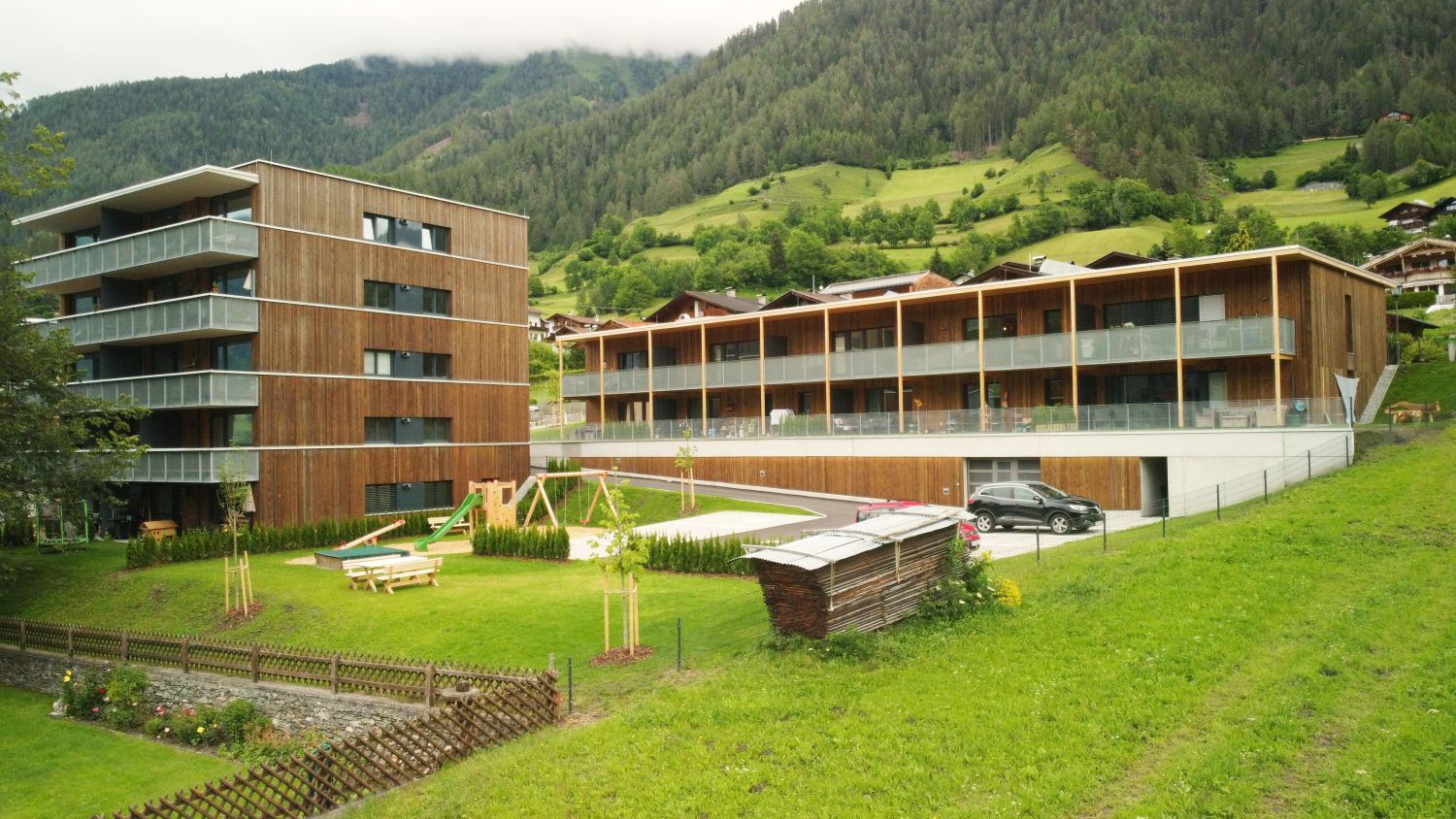 Auffallend: Wohnanlage aus Massiv und Holz in Virgen