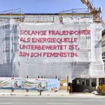 Bereits zum zweiten Mal wurde eine Baufassade der Alpenländischen als Präsentationsfläche für ein Kunstprojekt genutzt. Das temporäre Kunstprojekt von Katharina Cibulka „SOLANGE" zierte im Sommer ein Baugerüst in Wörgl.