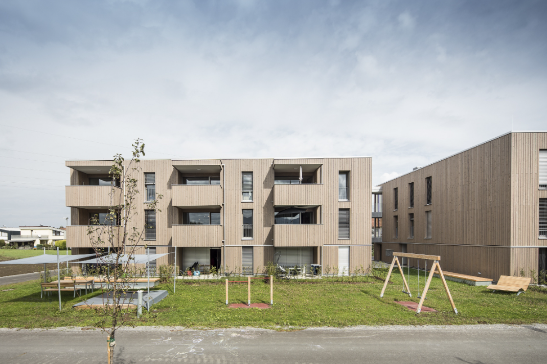 Die 23 Wohnungen mit einer gesamten Wohnnutzfläche von knapp 1.500 m2 haben alles zu bieten, was das Herz begehrt. So besitzen alle Wohnungen entweder einen Balkon oder direkten Zugang zum Garten und sind komplett barrierefrei. Geheizt wird über eine zentrale Luftwärmepumpe, zusätzlich befindet sich am Dach eine Photovoltaikanlage. Auch von außen machen die Wohnungen einiges her, Blickfänger ist definitiv die moderne Holzfassade, welche sich perfekt in die Gegend einpasst.